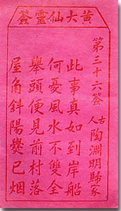 这支签,是平贵在军中建立战功,得意回窑,与妻子宝钏重逢的好景——眼前的事,就好像船靠岸,还愁没有风景?抬头见到前面的村屋,在夕阳里升起阵阵的炊烟。