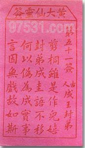 黄大仙抽签(第51签)